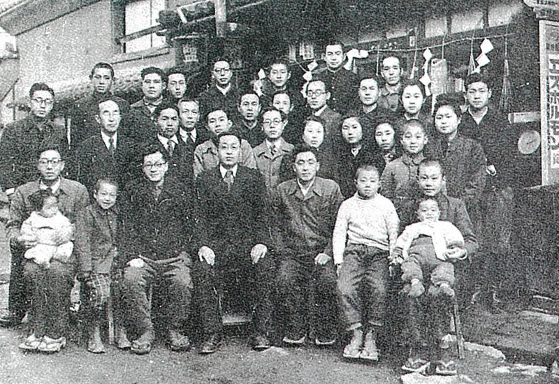 株式会社発足時ころの店頭における集合写真